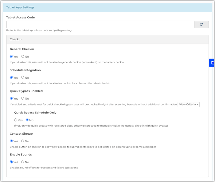 - Schedule Integration: allows the tablet app to integrate with your Class Schedule, which will allow members to sign up and/or check into classes
